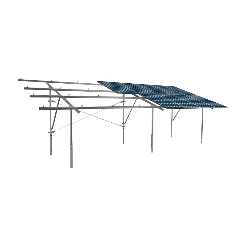 Monturarea PV cu două coloane adoptă o structură simetrică cu două coloane, iar rigiditatea generală este îmbunătățită de conectori transversali. Performanța purtătoare de sarcină și rezistentă la vânt este semnificativ mai bună decât cea a unei singure coloane. Corpul principal este oțel galvanizat sau aliaj de aluminiu, care este potrivit pentru aranjarea componentelor cu o distanță mare și designul cu unghi înalt. Fundația poate fi echipată cu grămezi încorporate sau stâlpi de beton. Este potrivit pentru zonele muntoase și de coastă, cu o presiune ridicată a vântului sau o încărcătură grea de zăpadă, asigurând stabilitatea centralei de -a lungul ciclului său de viață.