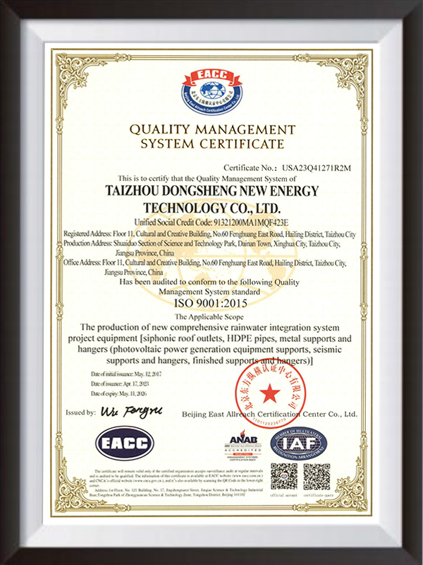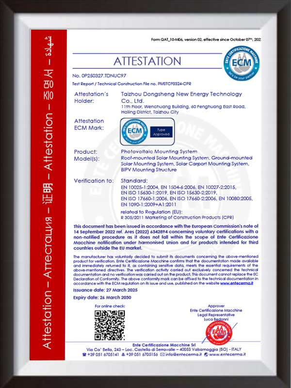 Produsele de montare a acoperișului plat furnizat de Taizhou Dongsheng New Energy au trecut toate certificarea sistemului de gestionare a calității ISO. Unele componente de bază adoptă un design structural brevetat independent, iar tratamentul de suprafață adoptă galvanizarea la cald (≥80 μm) sau procesele de anodizare pentru a prelungi eficient durata de viață a serviciului.